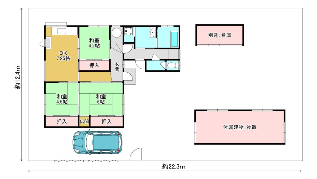 | 間取内容 | 和室4.5畳 和室4.5畳 和室6畳 DK7.3畳 | ||